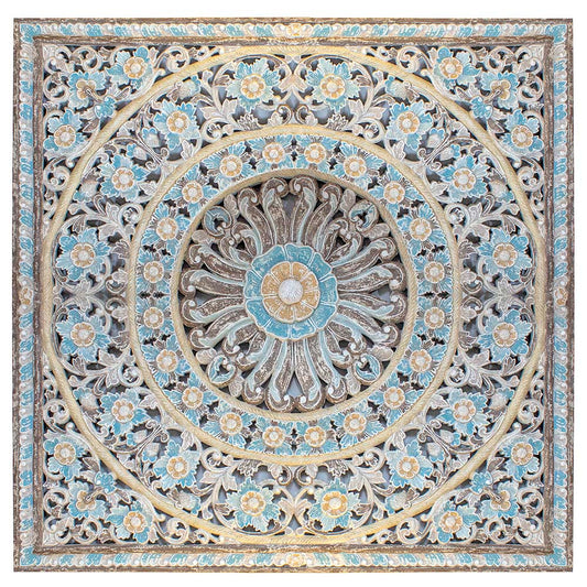 Balinese Carved Mandala Full Bed Headboard Dianna Blue - USA