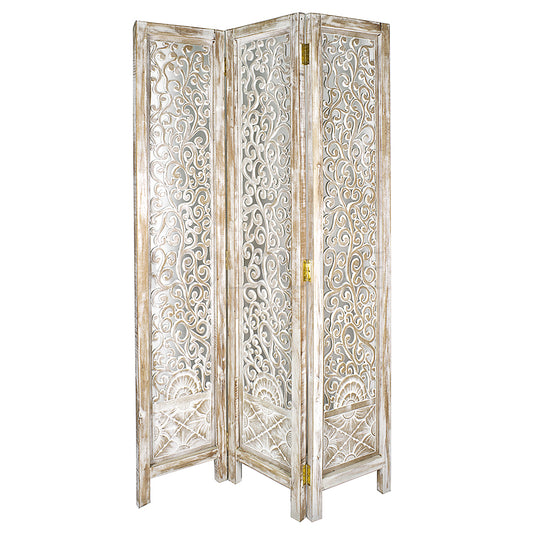 Carved Room Divider "Ombak" 170 cm in Natural Wash