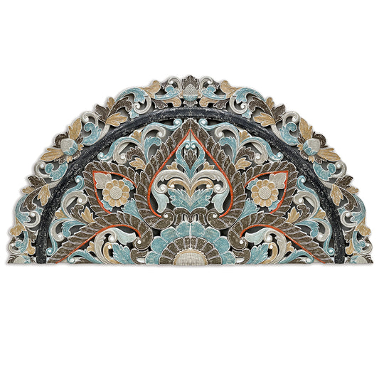 Hand carved King Size Half-moon Mandala Bed headboard Bunga in multi color - 72 inches