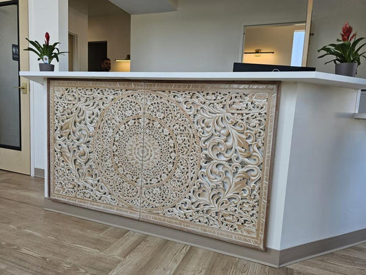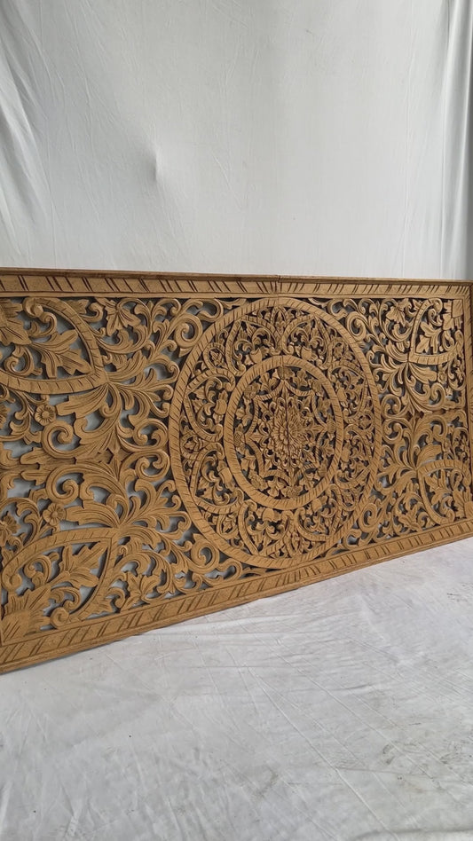 Half cut Queen Size Mandala Bed Head Berawa | Hand Carved Wall Decor | Balinese Wood Wall Art | Boho Bed Headboard | Tropical Home Decor