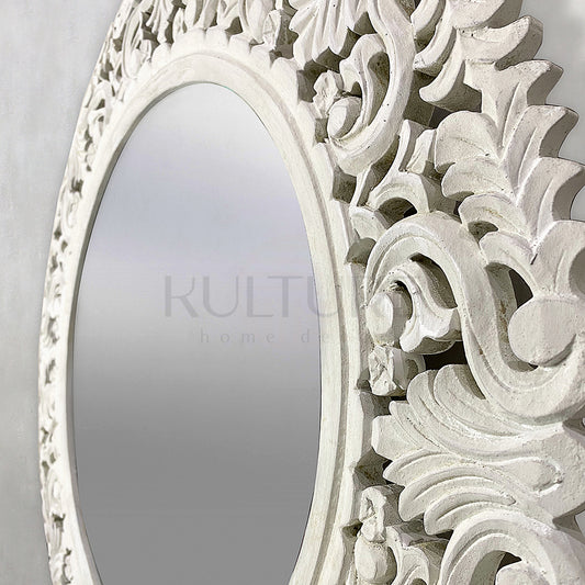 Hand Carved Mirror "Aruni" - White wash - 80 cm