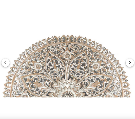 Hand carved Queen Size Half-moon Mandala Bed headboard 'Raflessia' in Antic Wash - 60 inches