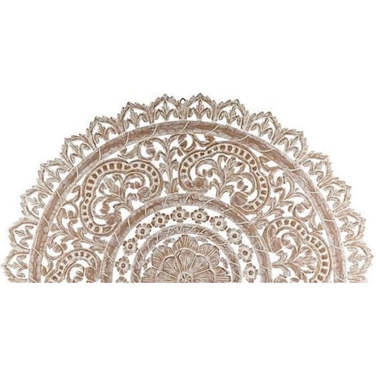 Hand carved Queen Size Half-moon Mandala Bed headboard 'Serupa' in Antic Wash - 60 inches