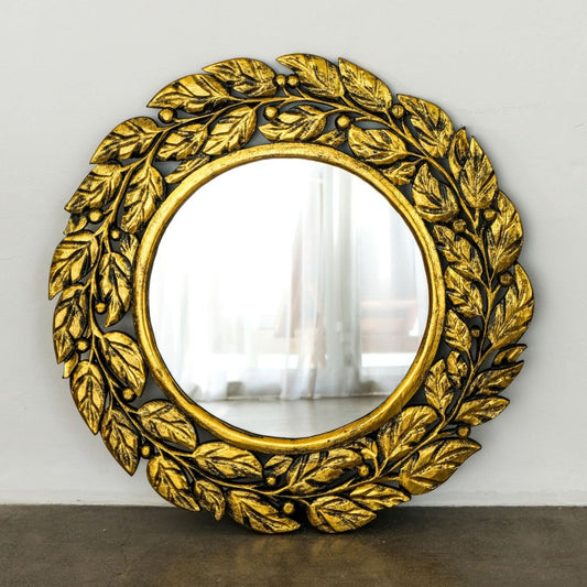 Hand Carved Mirror "Roopa" Gold antic wash - 80 cm