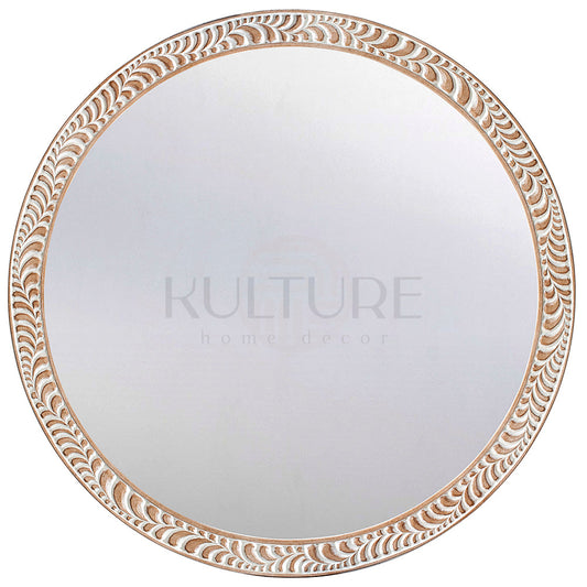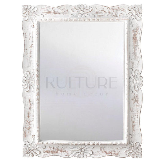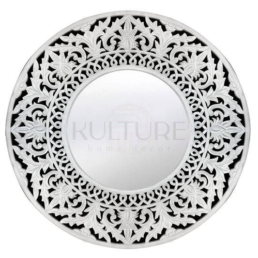 Hand Carved Mirror "Wanasari" White Wash - 70 cm