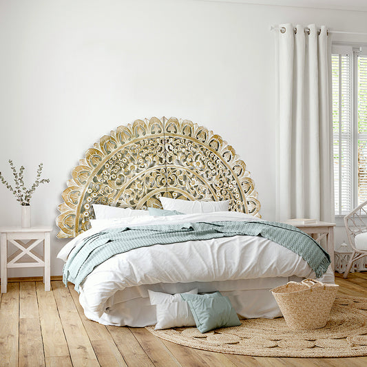 Queen Size Half-moon Mandala Bed headboard 'Semanggi' in Antic Wash - 60 inches