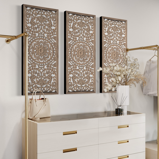 Set of 3 Decorative Panels "Pererenan" - Antic Wash