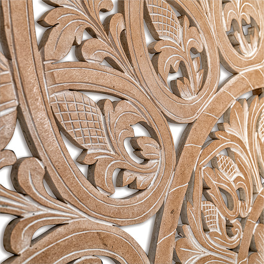 Carved Full Bed Headboard "Manusa" - Natural Brown