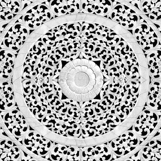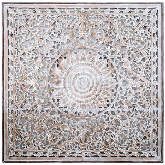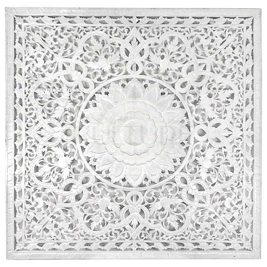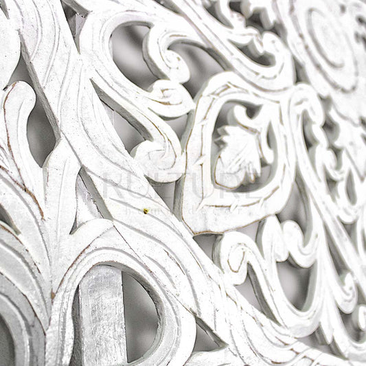 Carved Bed Headboard "Teratai" - White