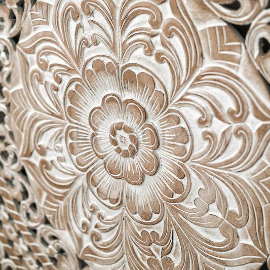 Carved Full Bed Headboard "Raflessia" - Antic-wash