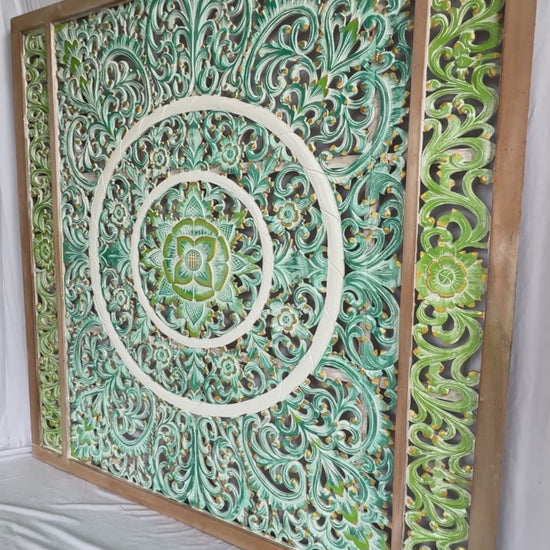 💛 BALINESE HAND-CARVED MANDALA BED HEADBOARD 'EMERALD' 💛