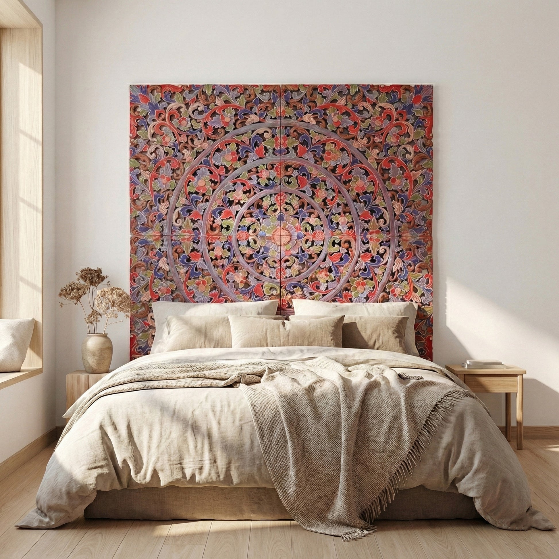 Dreaming of Ubud’s cool, laid-back vibes? Transform your bedroom with this stunning, hand-carved Balinese headboard!
