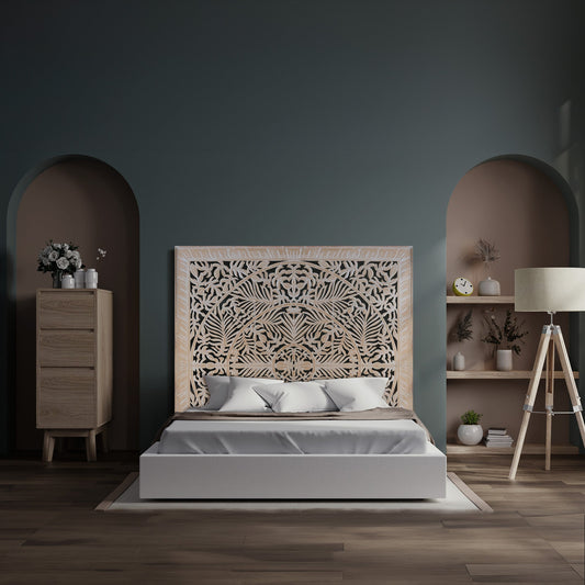 Carved Half Cut Bed Headboard "Sumber" - [US-stock]