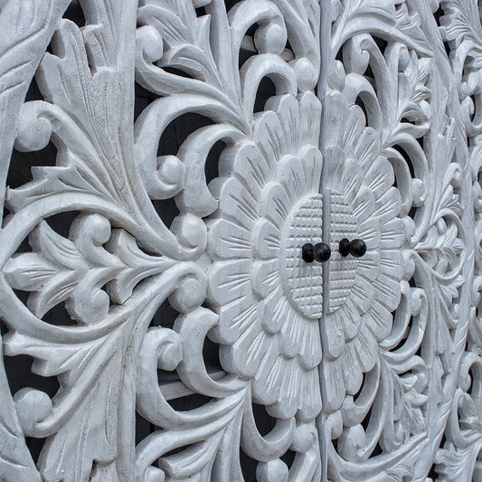 Hand-Carved Wooden Sideboard “Calyta” – White Wash Finish – 125 cm