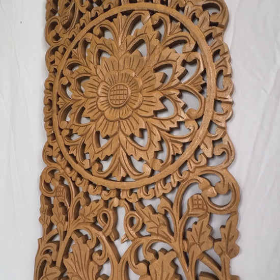 Hand made by a local craftsman in Central Bali, this intricate wood wall plaque can be placed in your living-room or bedroom.