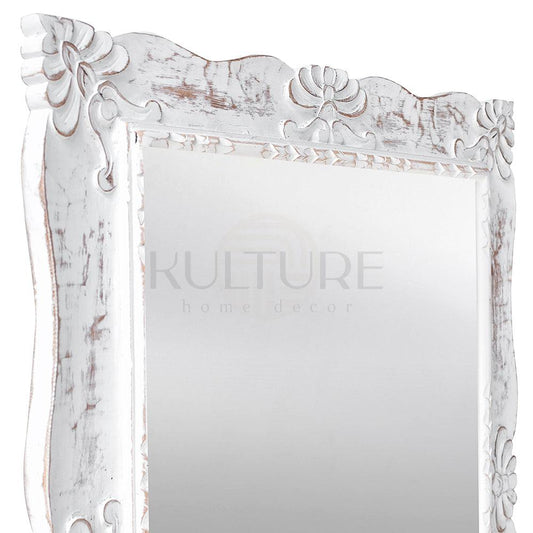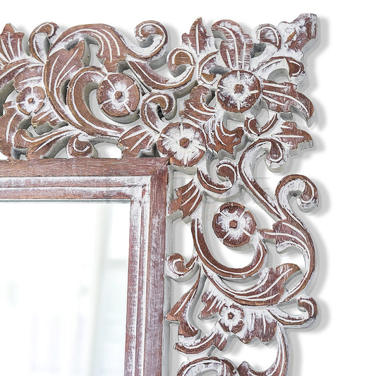 Hand Carved Mirror "Pertiwi" White Wash - 90 cm