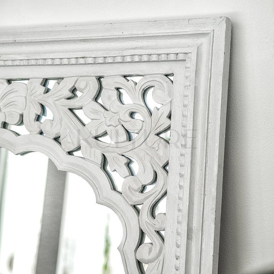 Hand Carved Mirror "Cahaya" in white - 150 cm