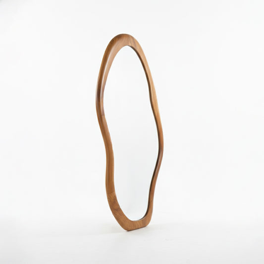 Wooden Organic Wavy Mirror 'Pagi' - Natural - 110 x 50 cm