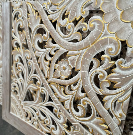 Carved Full Bed Headboard "Jantung" - White Wash - USA