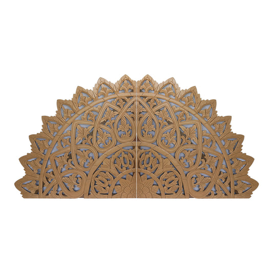 Carved Half Cut Bed Headboard "Sumber" - [US-stock]