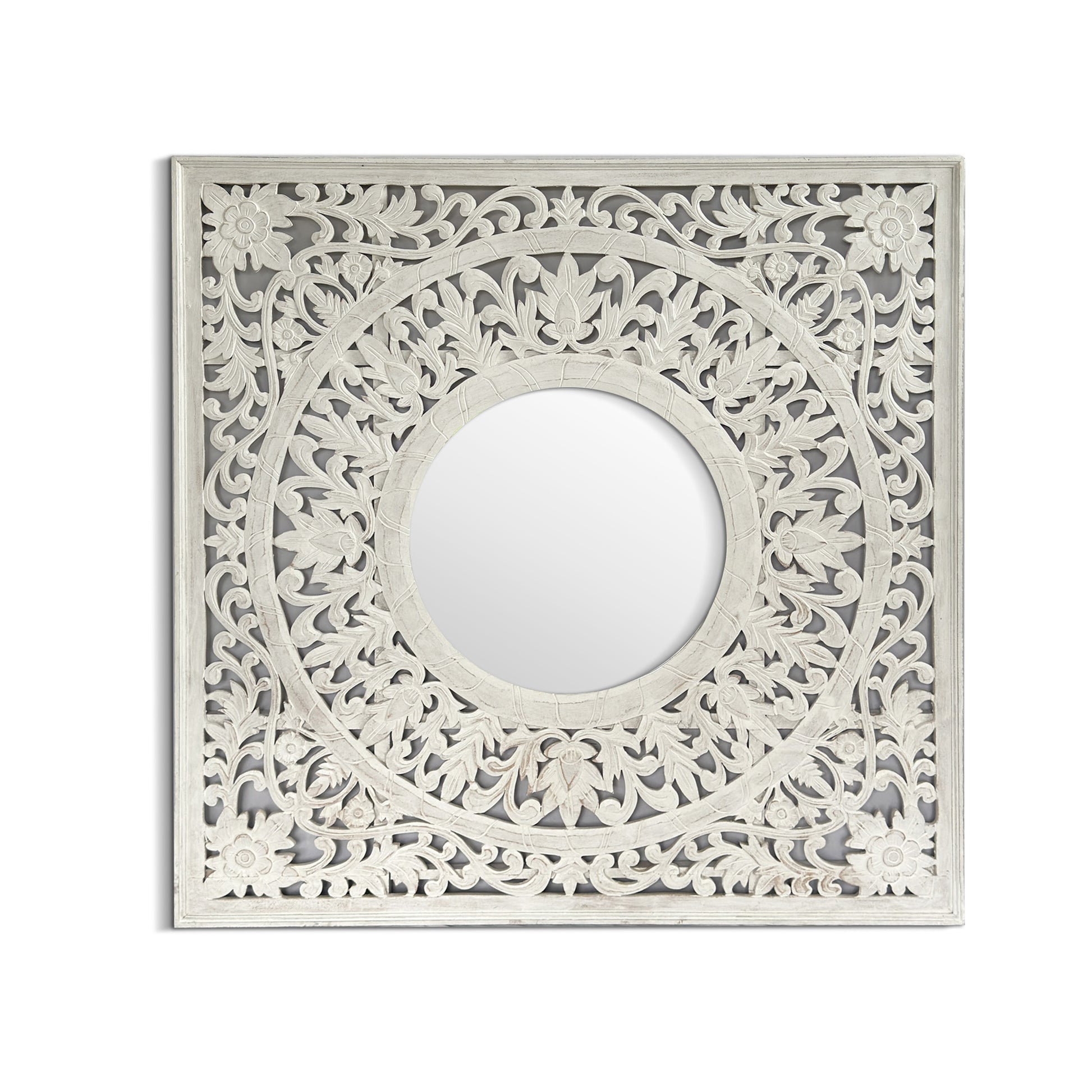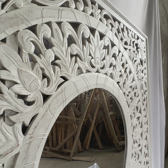Hand Carved Mirror "Kilau" - White wash - 130cm