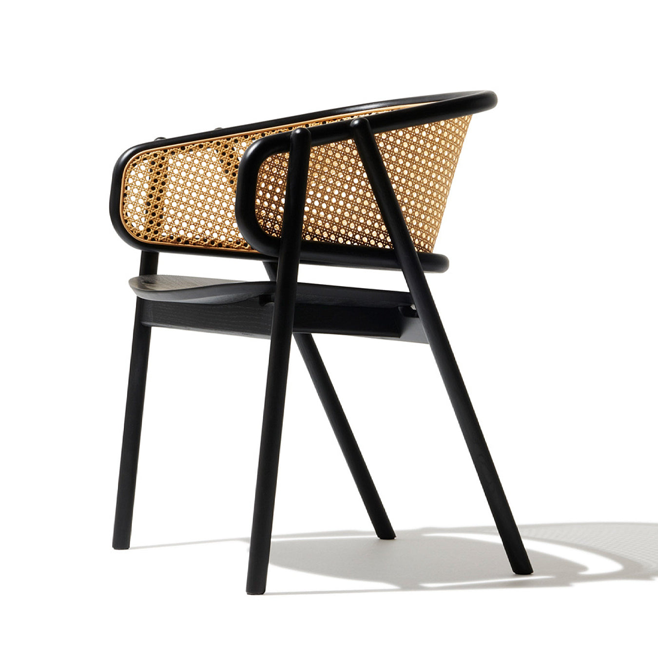 A contemporary reinvention of a popular mid-century design, the Cane Armchair hosts vibrant ash wood and curved contours for an eye-catching dining room addition.