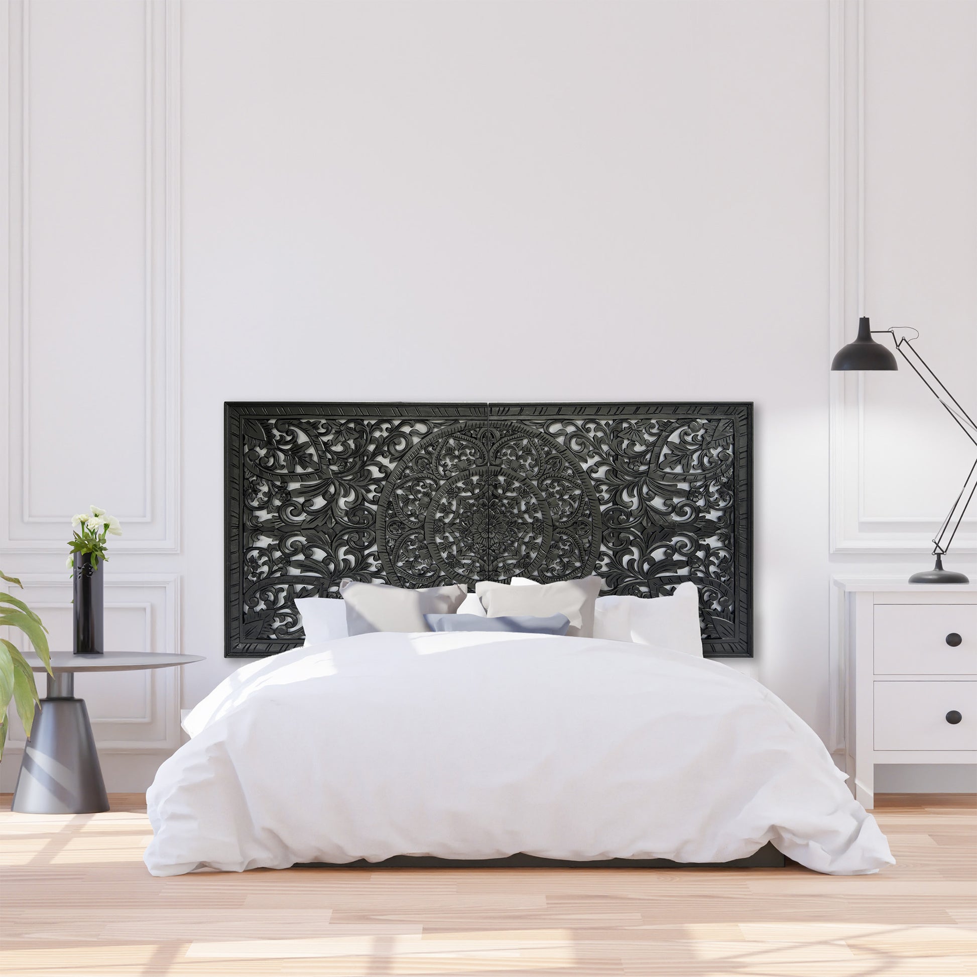 Half Size Mandala Bed Headboard "Manusa"- Black - USA