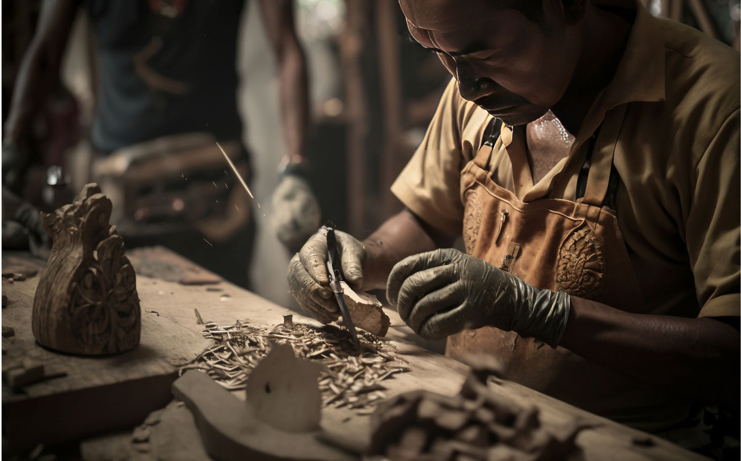 This is where our artisan's skills truly shine! She hand-carves the wood board with intricate detail which requires high levels of concentration and focus.