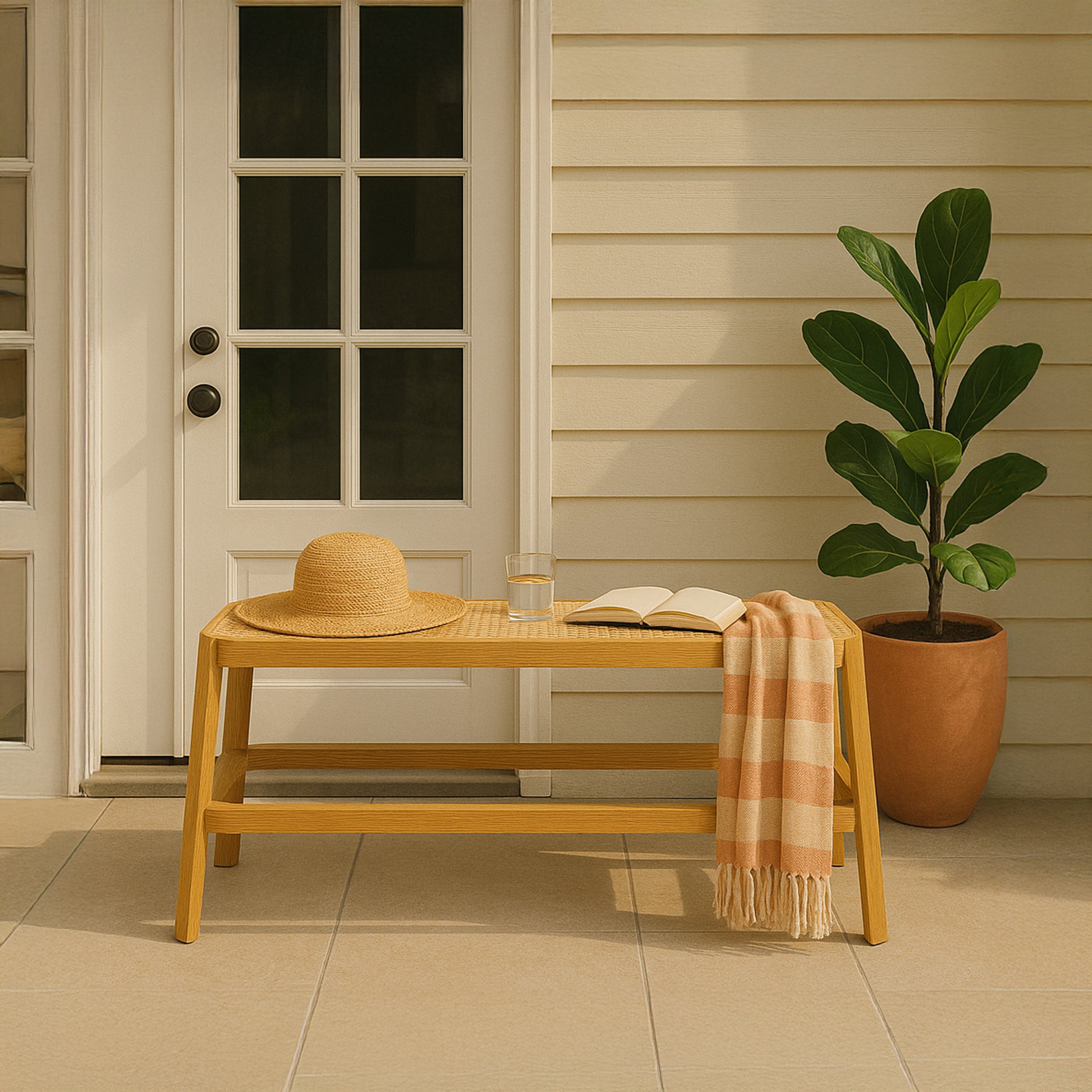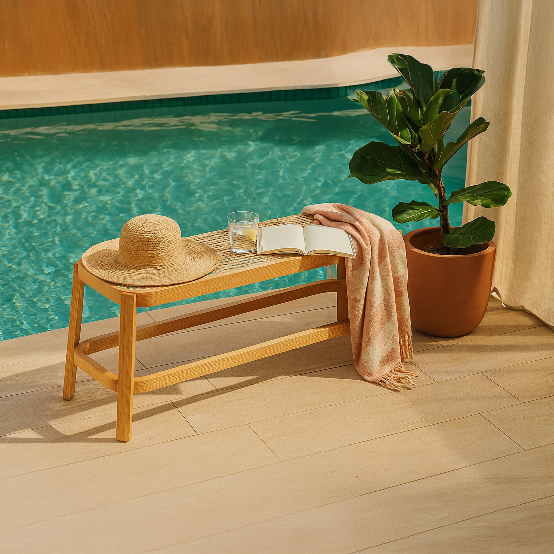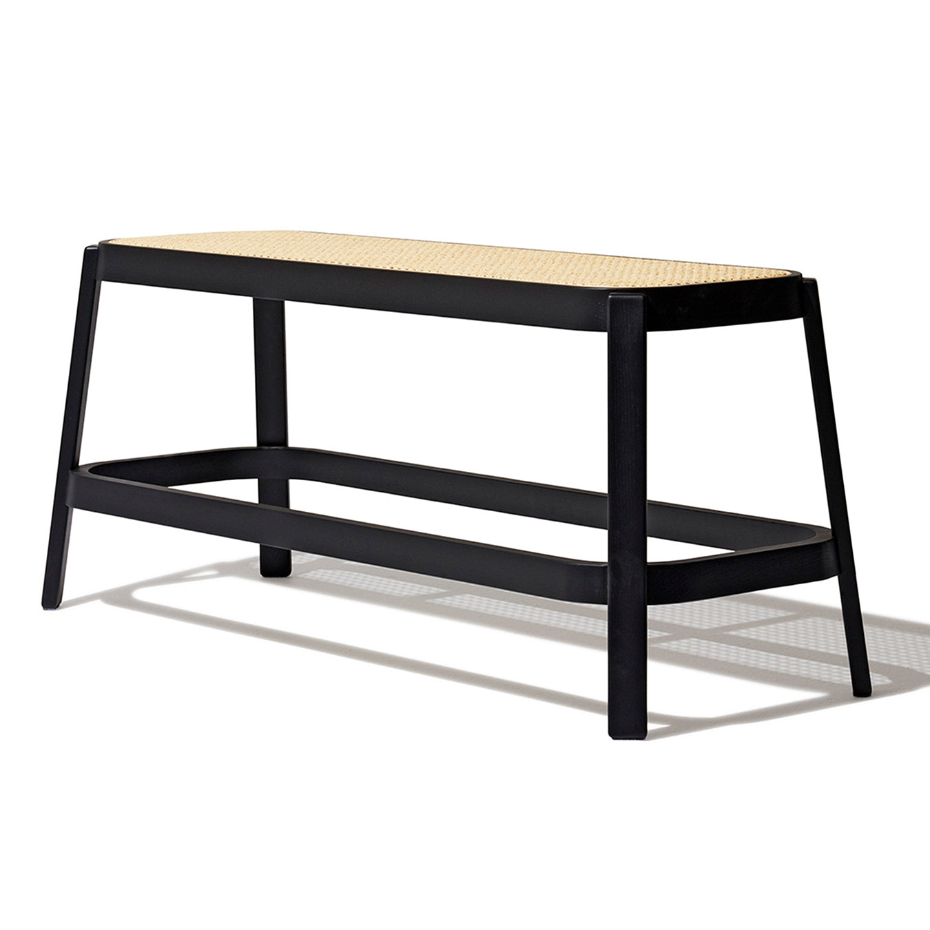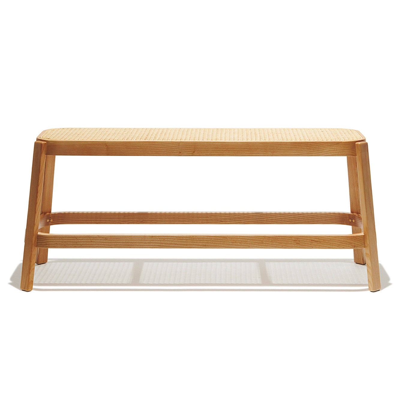 A contemporary reinvention of a popular mid-century design, the Asmara cane bench hosts vibrant ash wood and curved contours for an eye-catching accent piece.