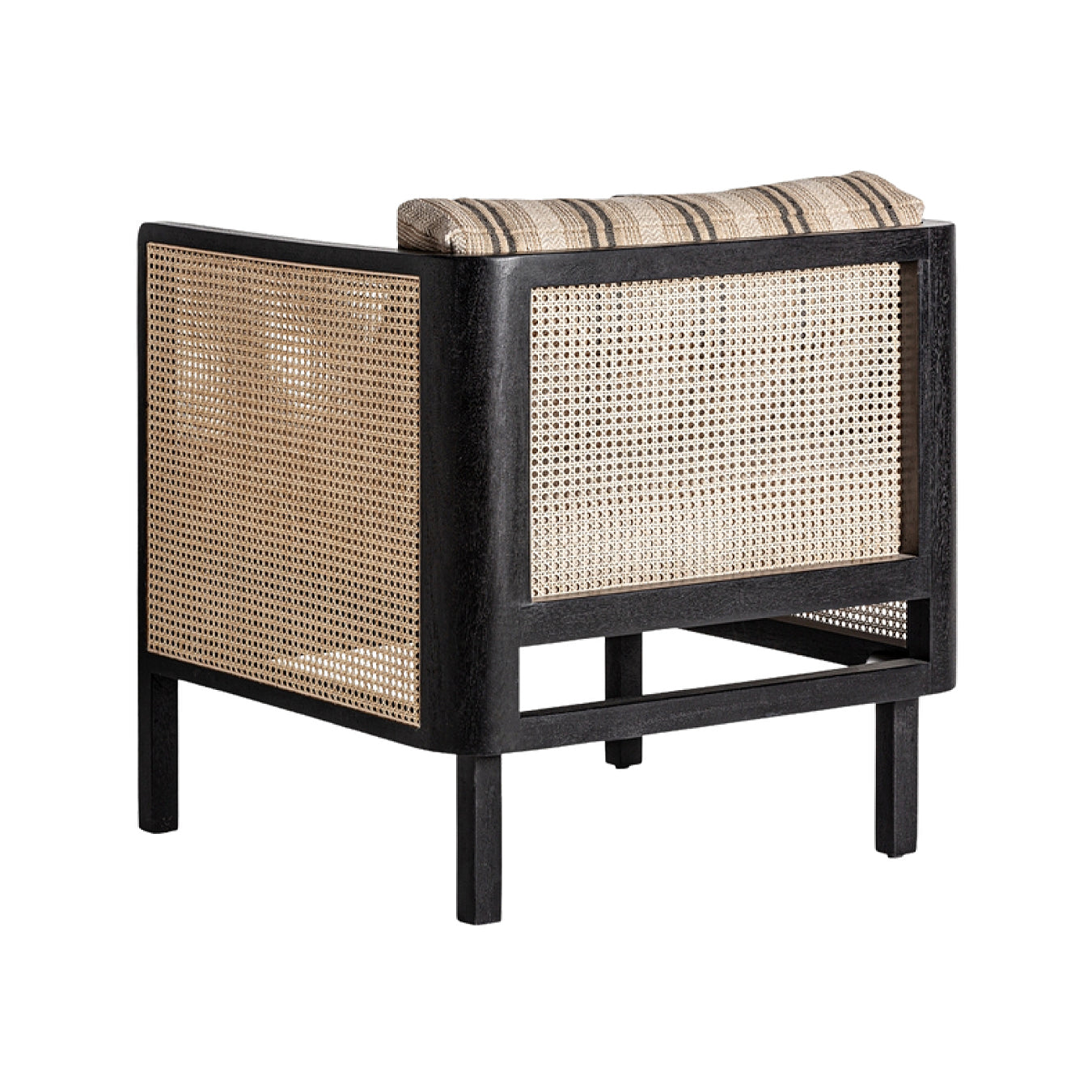 Exquisite design encourages everyday comfort. The Nuk Chair features an alluring U-shaped frame accented by woven cane and negative space, offset by a textured cushion.