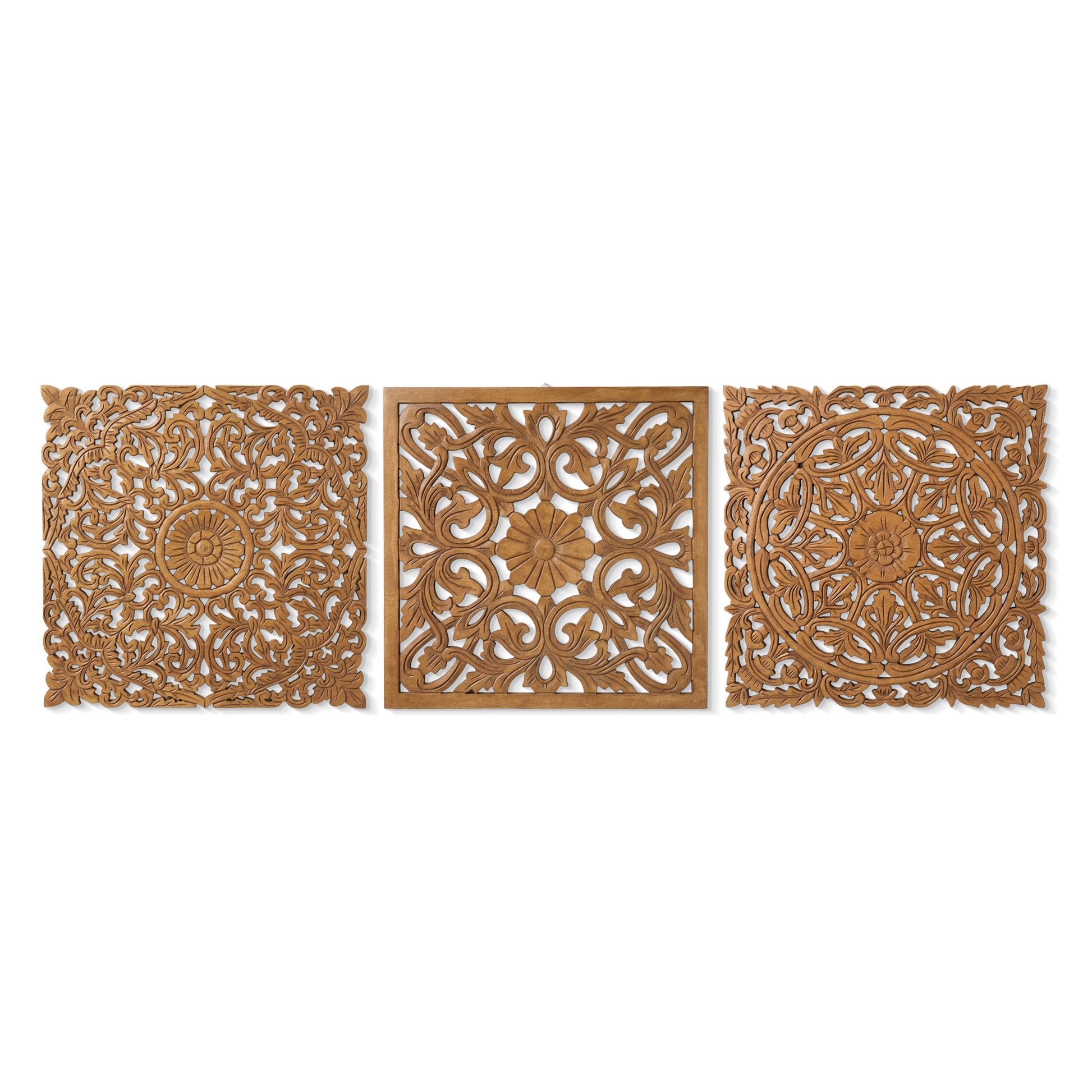 Set of 3 Decorative Panels "Pererenan" - Natural Brown - 50 x 50 cm
