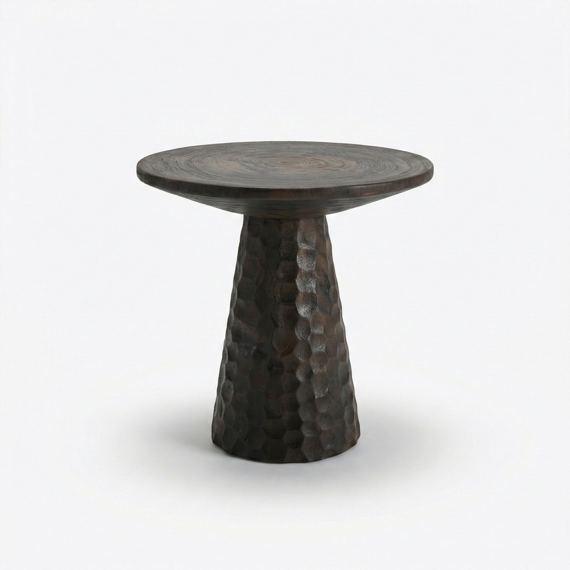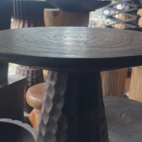 Measuring 50 cm in diameter and 50 cm in height, Ruang works beautifully as a side table, bedside table, or occasional stool. Its rounded body and carved vertical details create a soft rhythm of light and shadow, highlighting the natural wood grain that makes every piece unique.